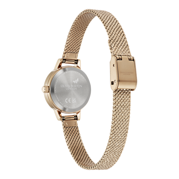 Olivia Burton Glitter Dial 3D Bee 這款獨一無二的設計格外奪目耀眼。柔美色調賦予奢華質感,閃耀的錶面上駐足可愛俏皮的 3D 蜜蜂圖案。23mm的小巧錶徑,配戴舒適,恰到好處的閃耀光芒使其在人群中脫穎而出
